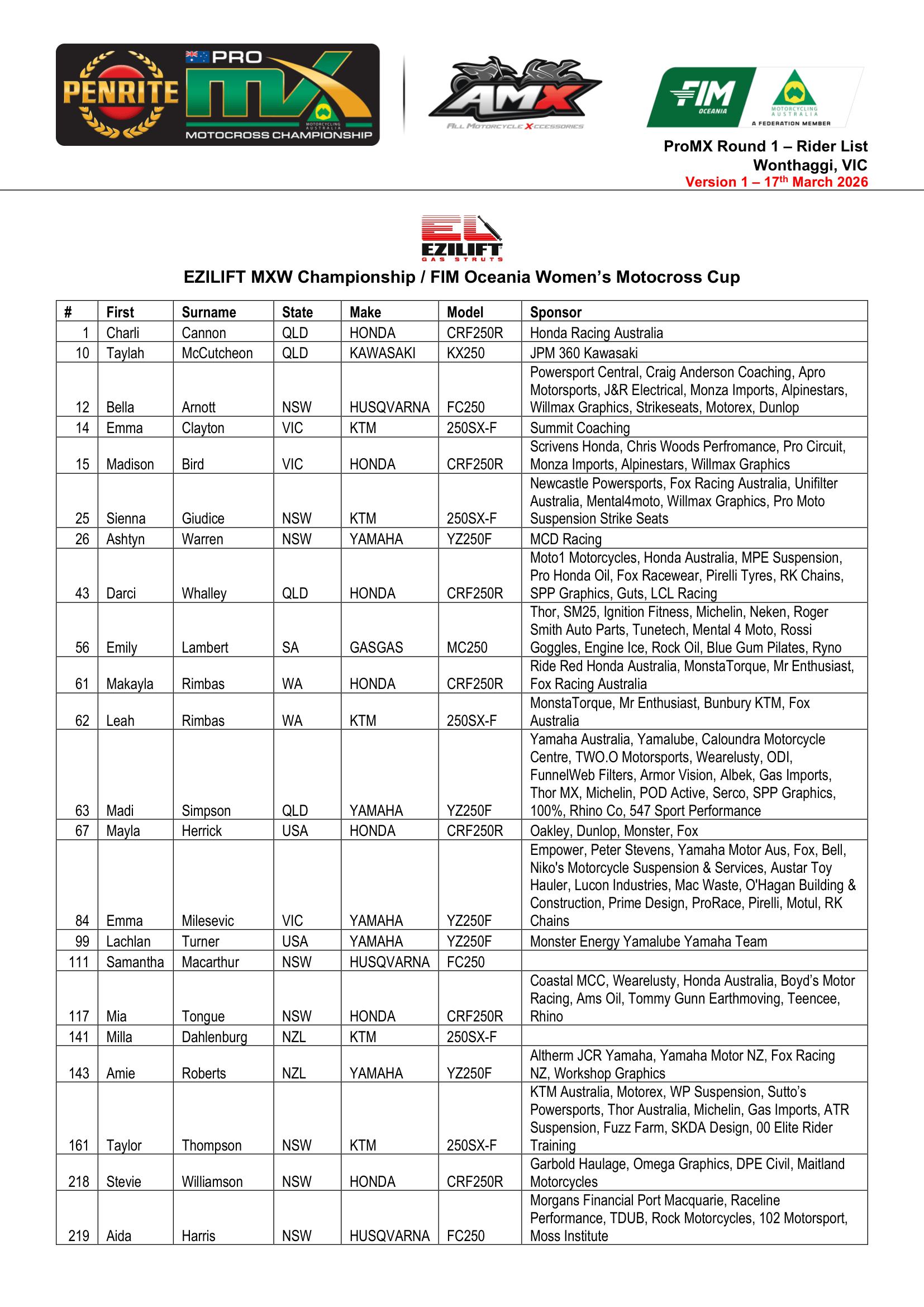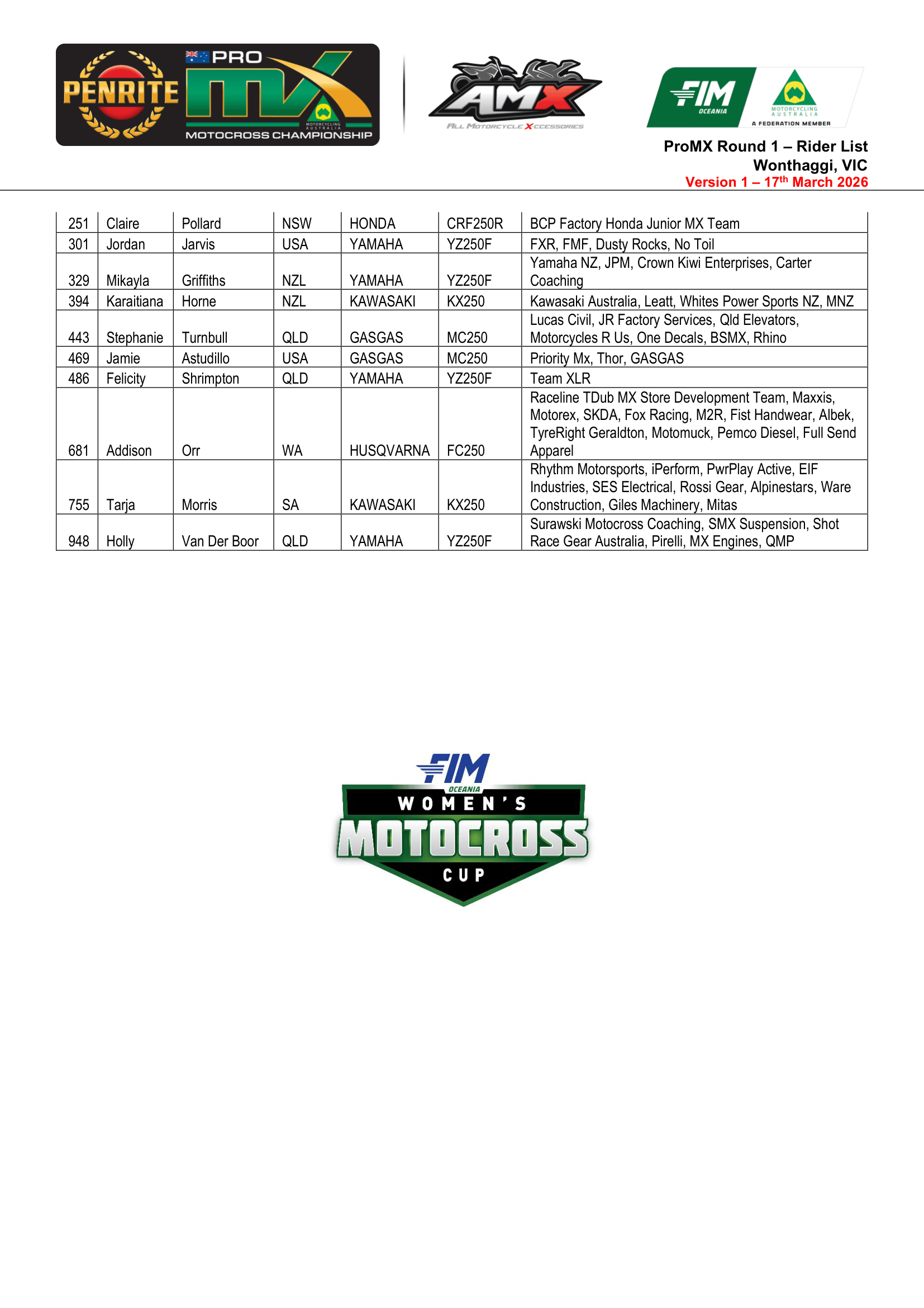 This weekend marks the third edition of the FIM Oceania Women’s Motocross Cup in Wonthaggi, Australia. Two of the three races will count towards the 2026 Australian Championship, making this event particularly significant for the riders.