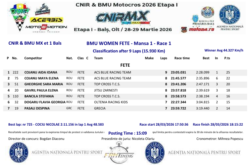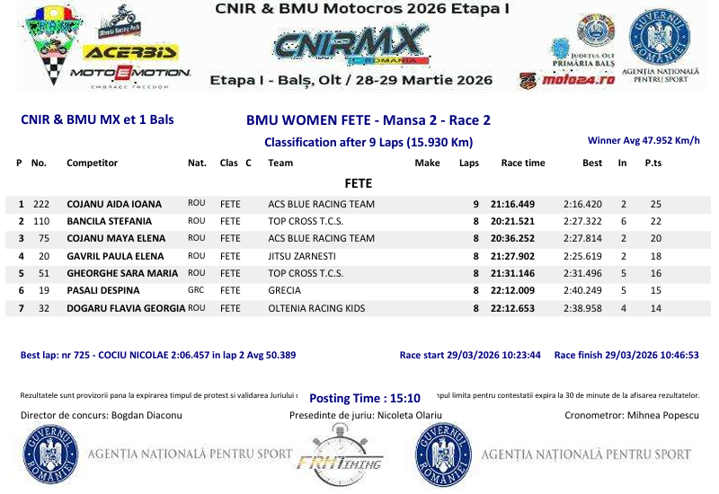 This weekend saw the first round of the BMU (Balkan Motorcycling Union) championship. This organization brings together the national motorcycling sporting authorities from Romania, Bulgaria, Greece, Turkey, Serbia, North Macedonia, Cyprus, Bosnia and Herzegovina, and Moldova. The first round was held in conjunction with the opening of the Romanian championship. Aida Cojanu won this first round. Discover the results.
