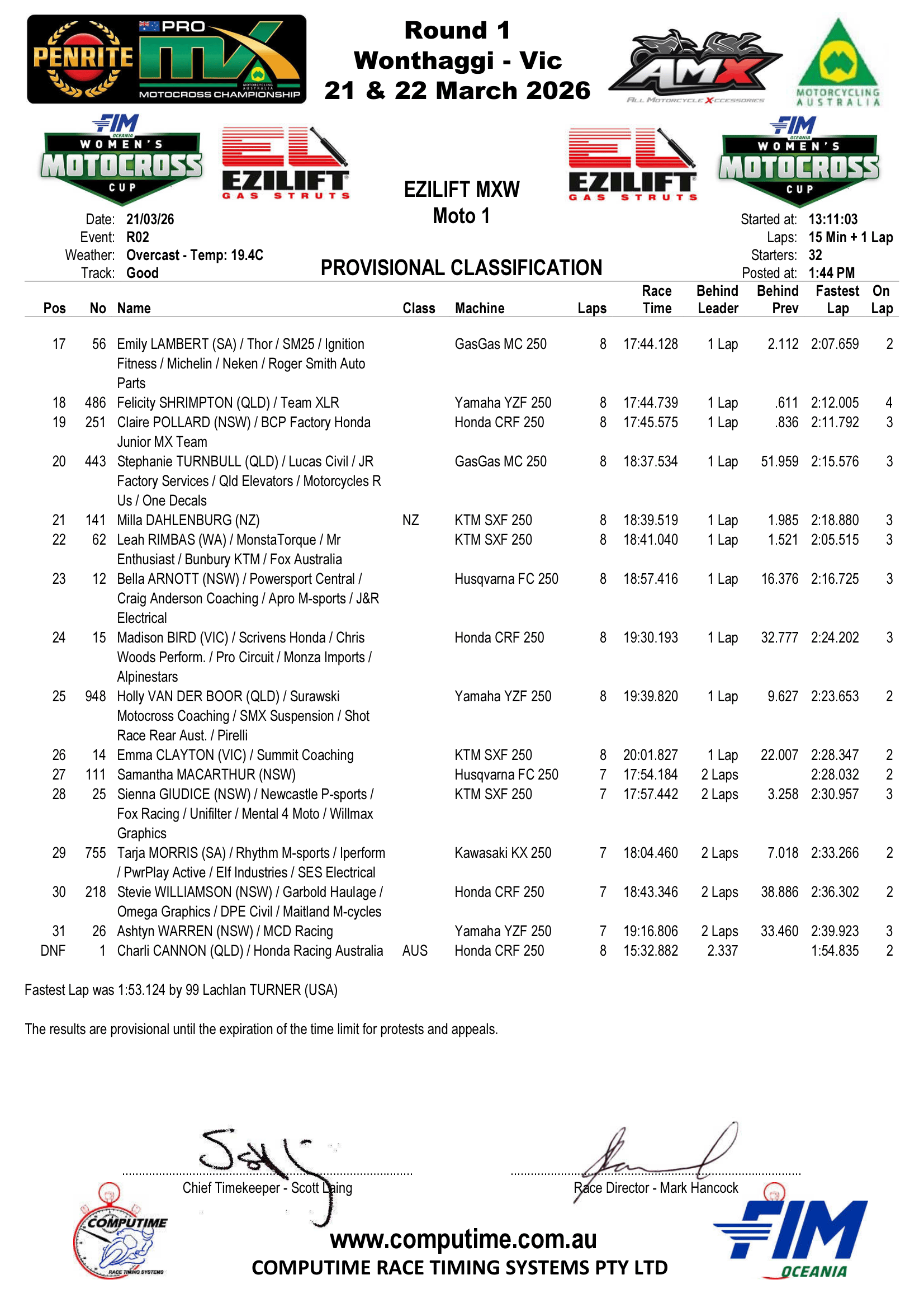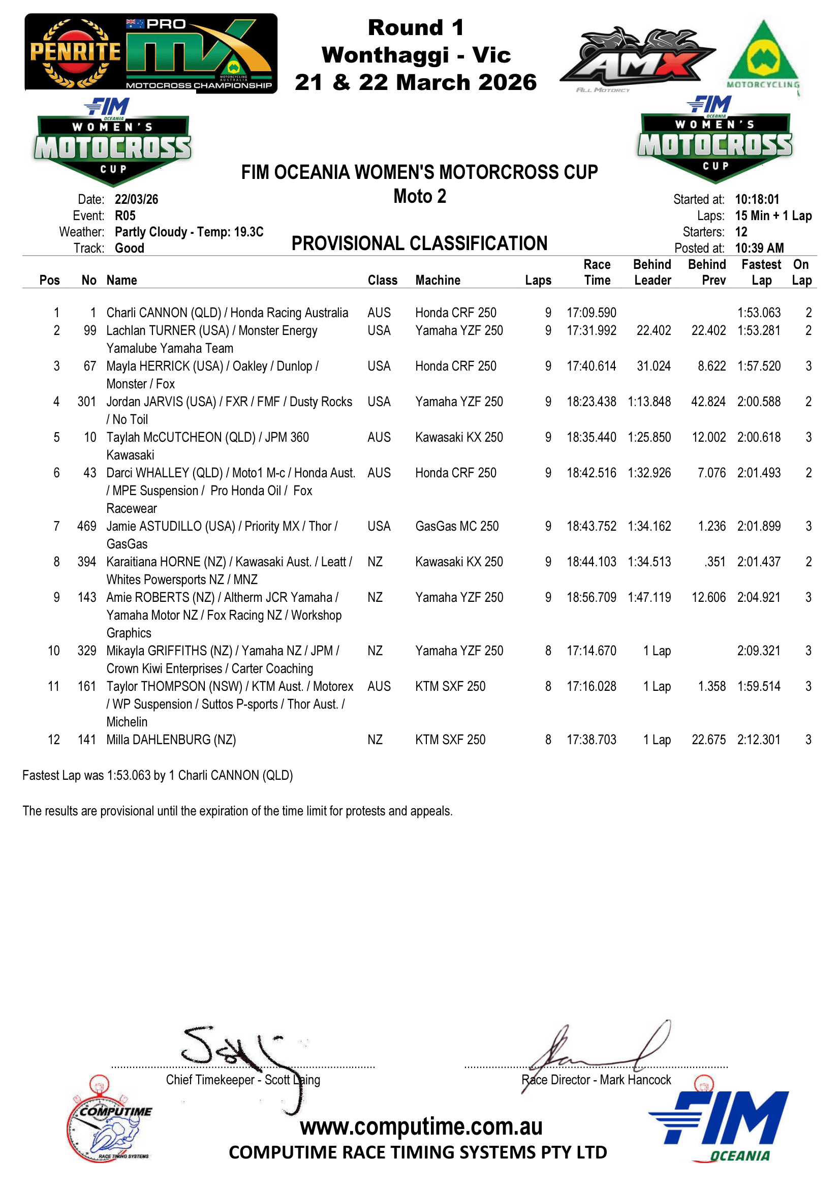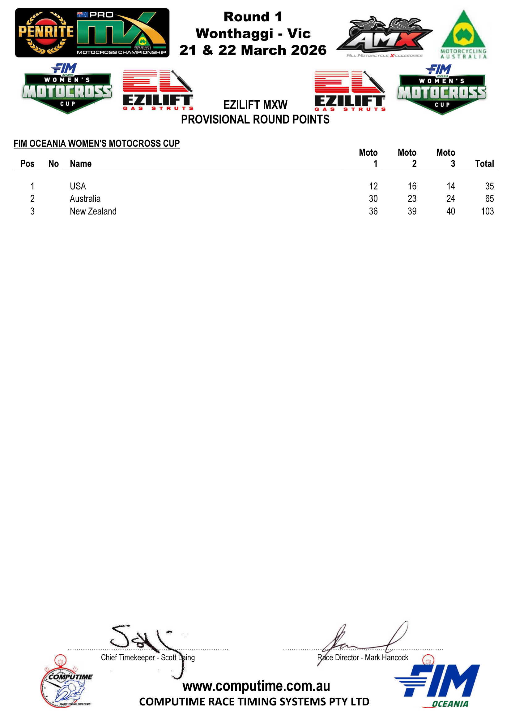 FIM Oceania Women’s Motocross Cup – The Results