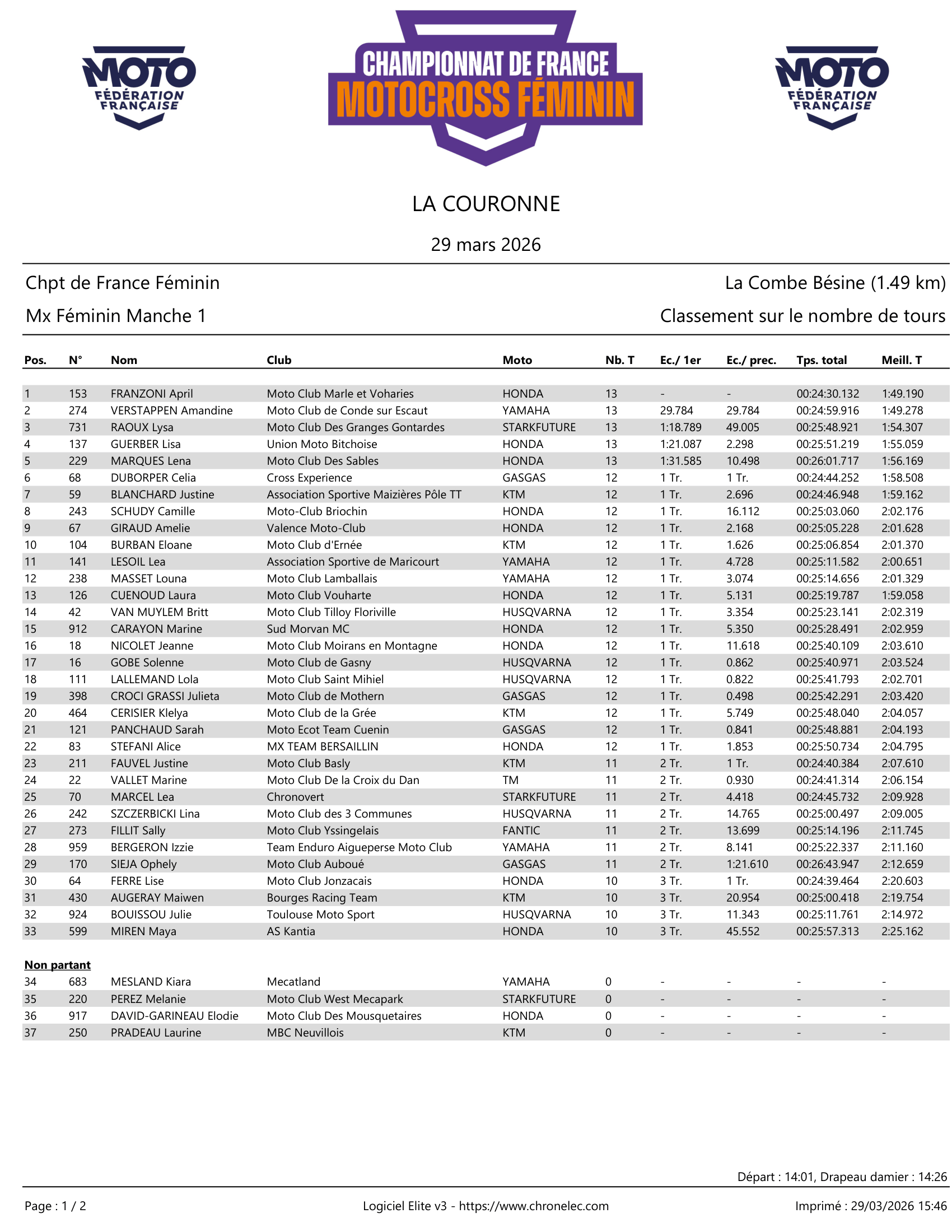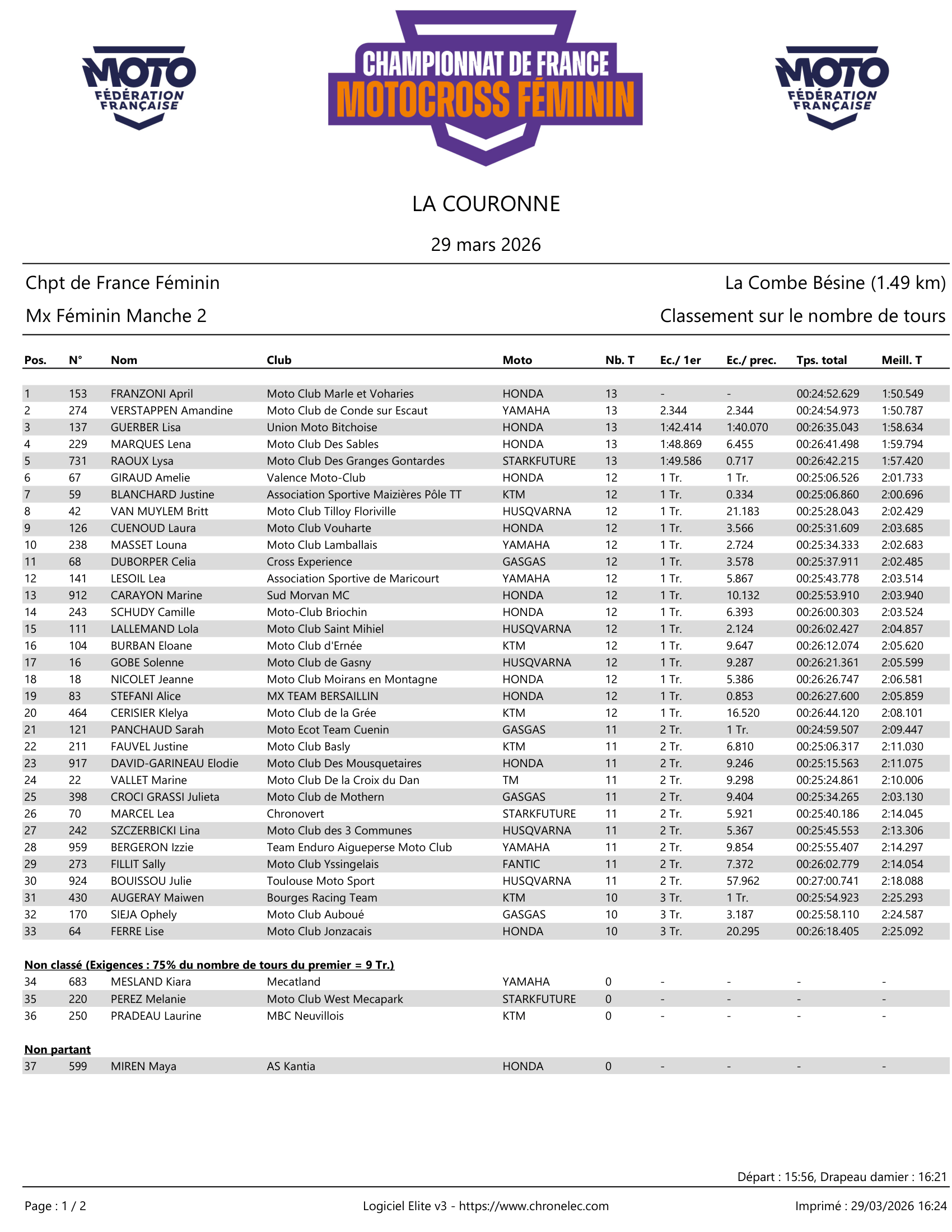 This Sunday saw the second round of the French MXF Championship take place in La Couronne. April Franzoni delivered a superb performance, winning both motos and thus leaving this round as the championship leader. Celia Duborper took the victory in the 125cc class. Check out the results.