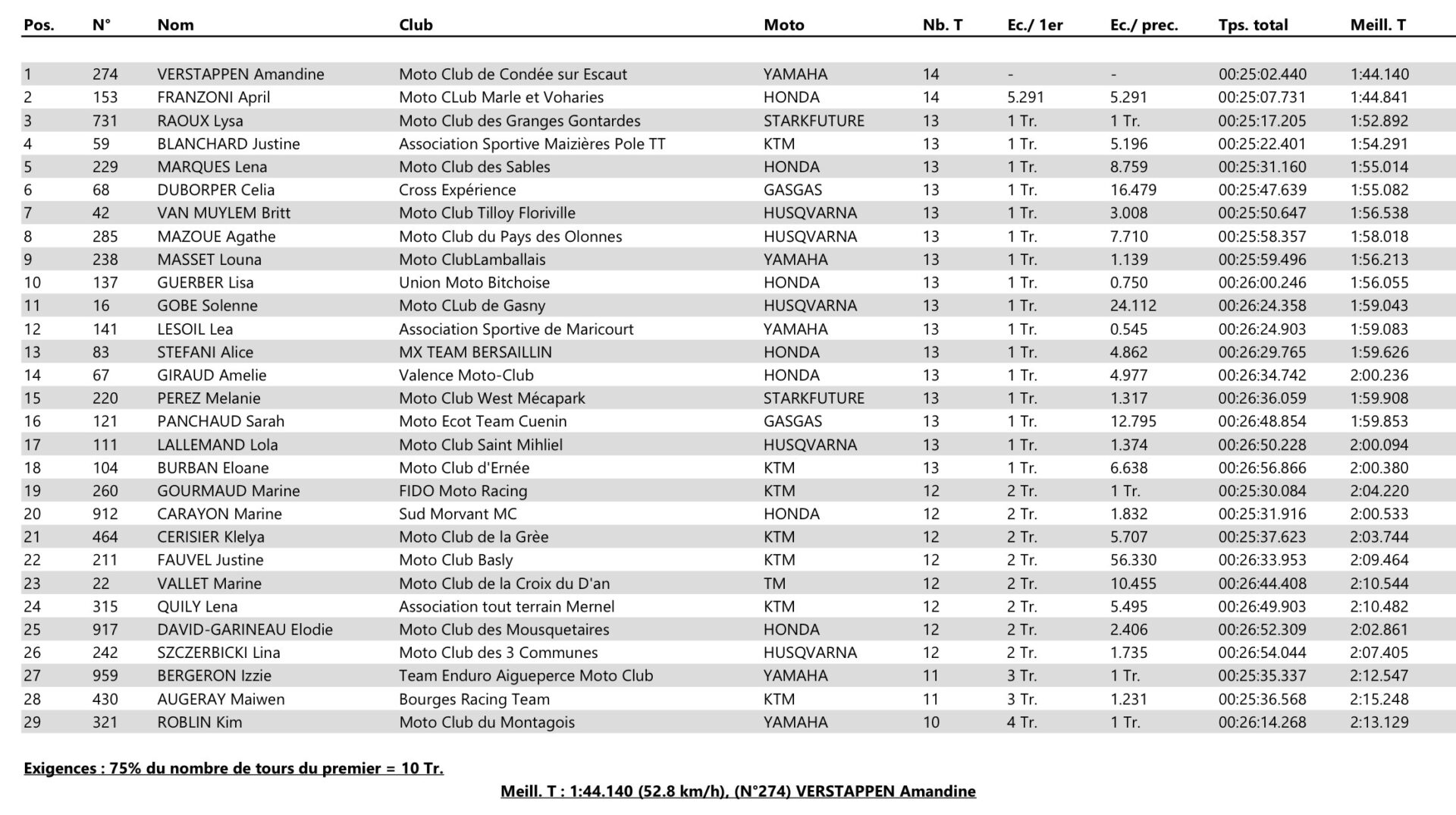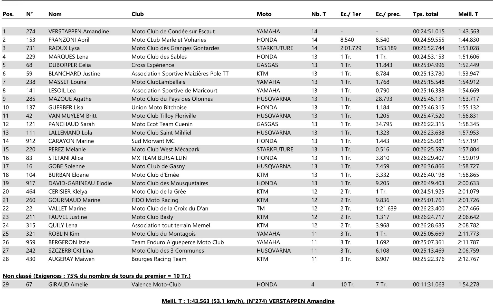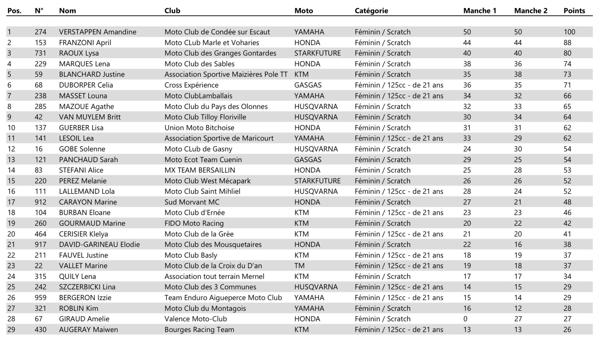 Amandine Verstappen secured a double victory at the third round of the French MXF Championship in Thouars. April Franzoni and Lysa Raoux completed the podium. Celia Duborper achieved a double win in the 125cc class and extended her lead in the championship. See all of today’s results.