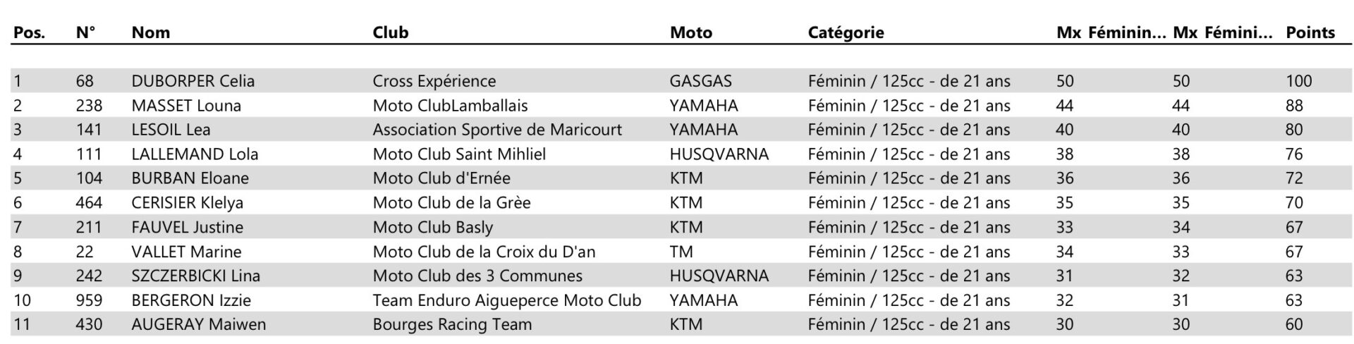 Women 125 Overall