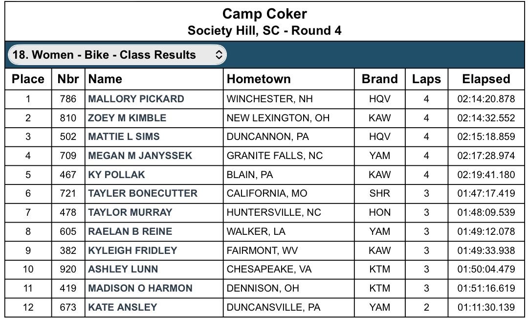 This weekend saw the Camp Coker event, the fourth round of the GNCC championship. Arriving as co-leader, Danielle McDonald secured her second victory. Discover all the results.