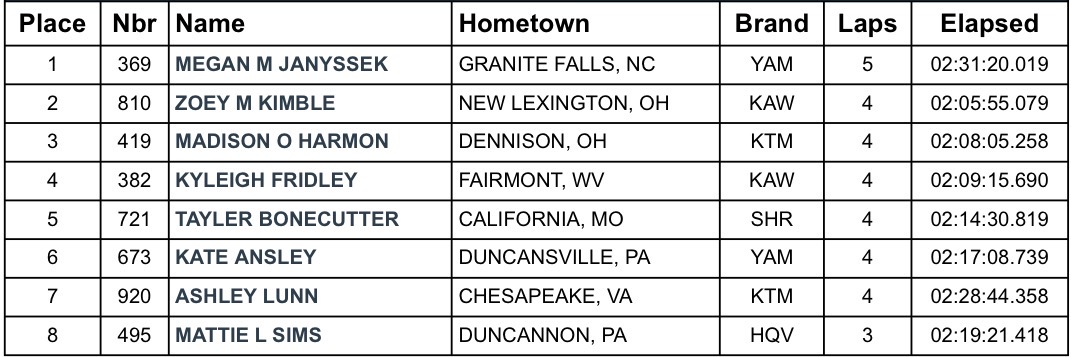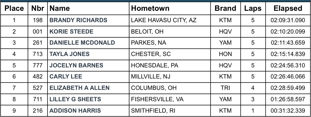 As the dust settled on the inaugural Rocky Mountain ATV/MC Dukes GNCC, the new Kentucky venue proved to be a great addition to the Progressive Grand National Cross Country (GNCC Racing) Series. The fifth round saw Brandy Richards take the victory, followed by Korie Steede and Danielle McDonald. Check out the results.