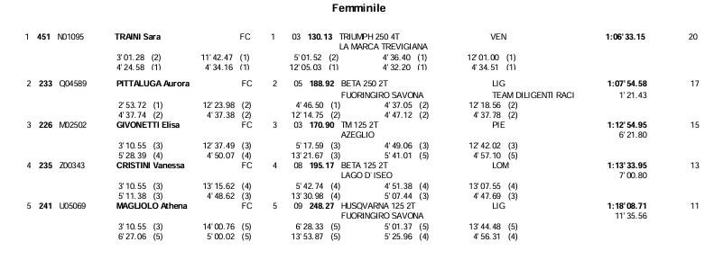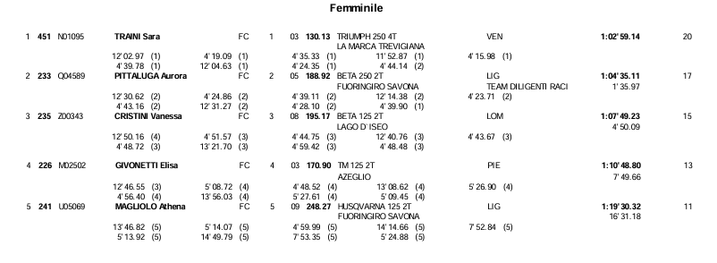This weekend saw the second round of the Italian Enduro Championship take place in Caltanissetta. Sara Traini secured another double victory, finishing ahead of Aurora Pittaluga. Elisa Givonetti and Vanessa Cristini shared the final podium spot, Givonetti on Saturday and Cristini on Sunday. See the results below.