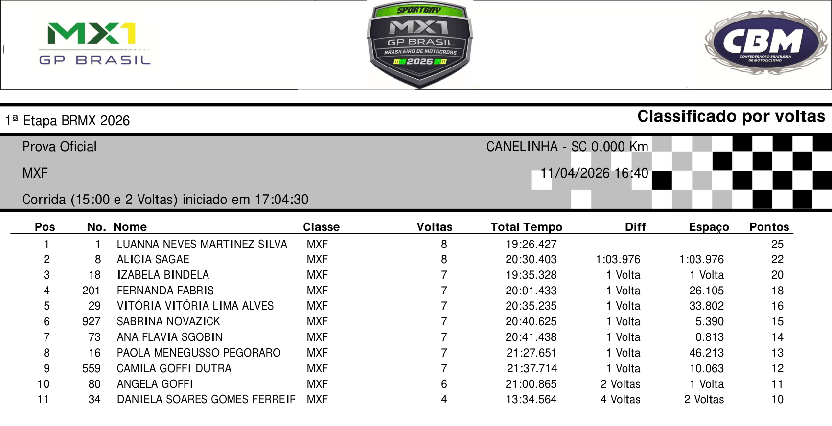 This weekend also saw the opening round of the Brazilian motocross championship. Reigning champion Luanna Neves began her title defense in the best possible way, winning the first round. Alicia Sagae finished second ahead of Izabela Bindela. Check out the results.